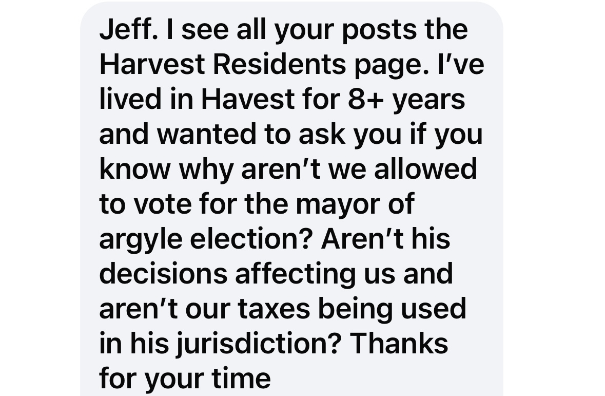 Whether it’s the resident that called Northlake seeking support for a No U Turn on our road. Or the resident who called Tim asking for No Parking signs. Or this person who doesn’t understand why we don’t vote for Argyle Mayor… We have an ongoing awareness challenge. And that’s both for Megan and for us as board members. I don’t think these messages will ever go away. But it’s a reminder that they can either reduce or grow in frequency based on our actions.